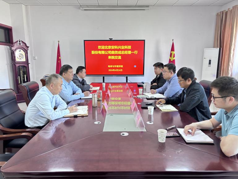 4月24日,北京安科兴业科技股份有限公司总经理曲效成、分公司经理辛崇伟等一行来电子轮盘 调研交流,院长刘启蒙、副院长吴荣新参加交流会。