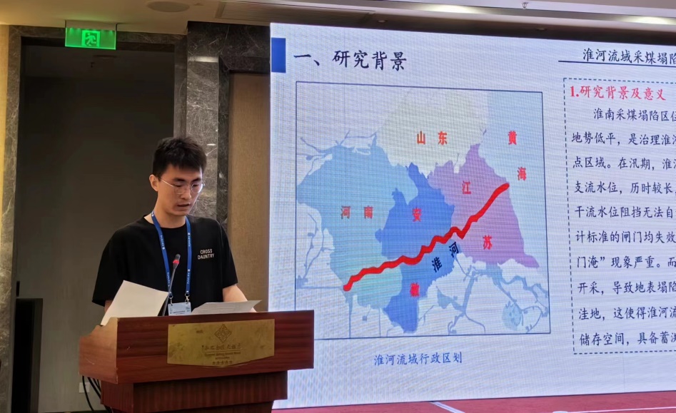 硕士研究生郭凯旋在分会场作题为“淮河流域采煤塌陷区防洪作用研究”的学术报告,从采煤塌陷区的预测分析入手,通过ArcGIS统计和几何计算的方法,利用相关数据,分析采煤塌陷区蓄洪排涝能力,为塌陷区的综合治理提供新的思路。