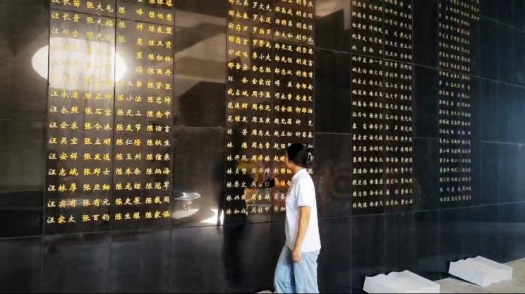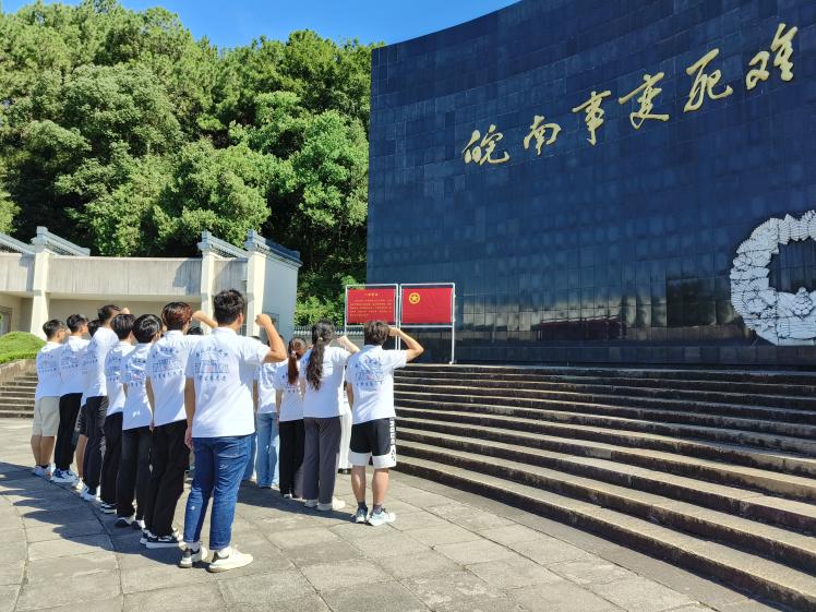 7月8日,团队前往皖南事变烈士陵园和新四军军部旧址,瞻仰烈士名录,回顾峥嵘岁月。在这里团队成员了解到革命先烈的英勇事迹,学习到那段悲壮历史,在烈士陵园,同学们抚摸着烈士纪念碑,沉重默哀,看着一幅幅题字,神情凝重,气氛肃穆庄严。在广场中央,团员青年们对着团旗重温入团誓词,口号响彻陵园,喊出了当代青年的挺膺担当。