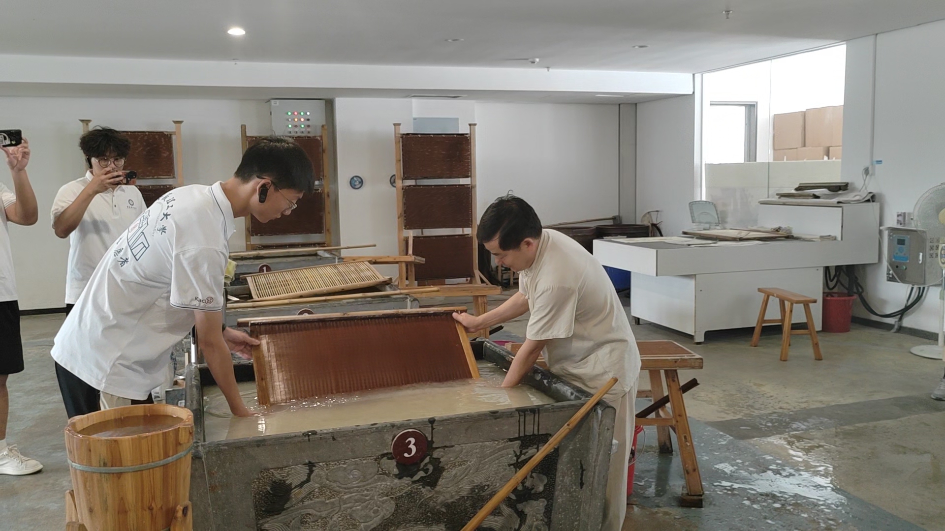 7月9日,团队来到宣纸文化园,体验非遗文化,了解传统技艺。同学们通过展馆一件件展品,一幅幅展图了解宣纸渊源和发展历史,在宣纸技艺体验区,同学们纷纷参与宣纸制作流程,体验传统手艺人的匠心独运。宣纸制作技艺是传统文化的瑰宝和代表,通过非遗体验,增强了同学们的文化自信,提升了同学们的文化自豪。