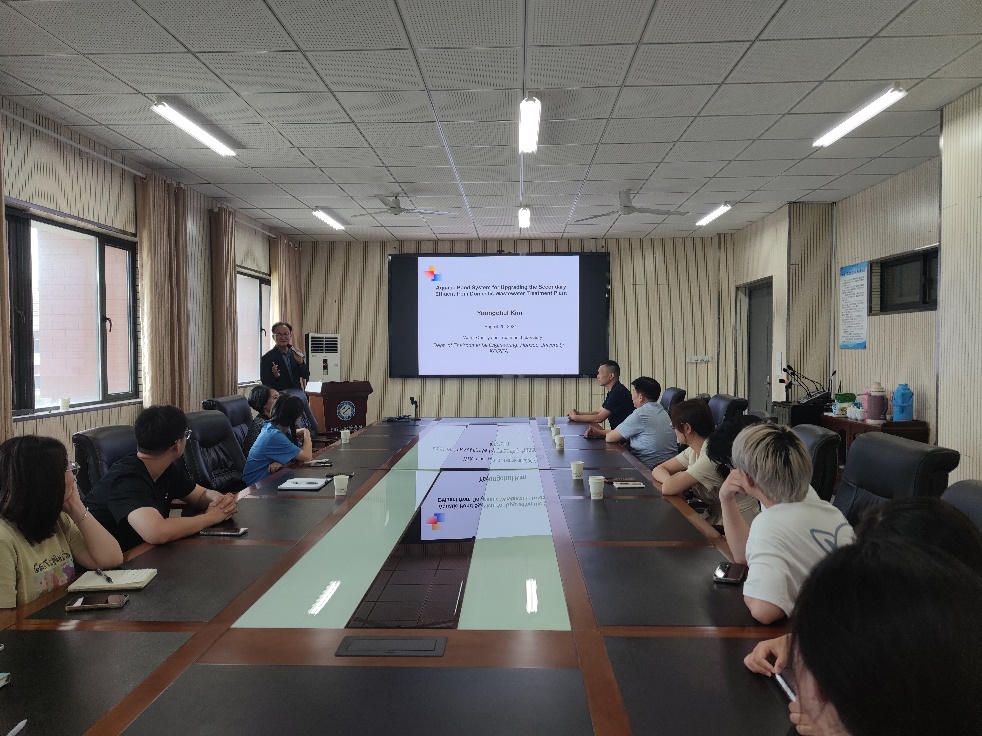 座谈会后,Kim Youngchul教授开展了题为“Aquatic Pond System for Upgrading the Secondary Effluent from Domestic Wastewater Treatment Plant”的学术报告。报告对基于机械设施的污(废)水处理工艺在土地利用需求、建设投资、运行成本等方面的局限性进行了分析,提出了基于生物和生态技术的水处理解决方案,并对其在农业区域、河流、湖泊、雨水径流管理等方面的应用,以及对污染物质的去除机理与效率进行了阐述。