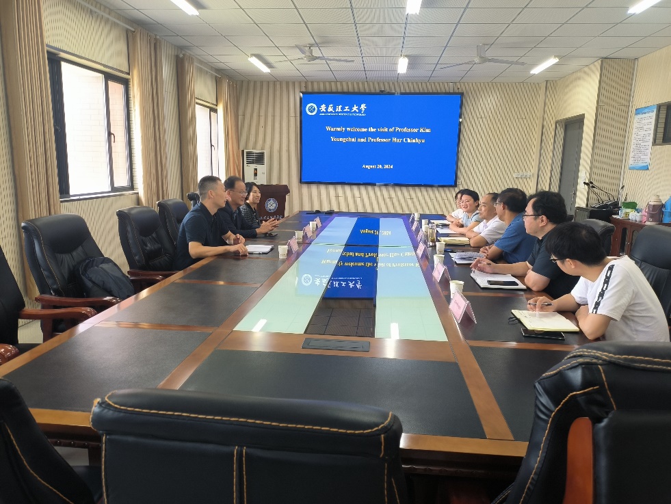 8月20日,韩国韩瑞大学Kim Youngchul教授和国立全北大学Hur Chinhyu教授应邀到访电子轮盘 ,受到校党委常委、副校长张平松的亲切接见。