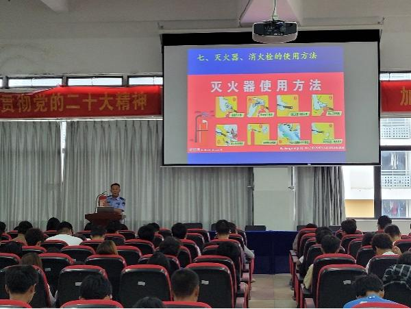演练活动开始前,保卫处彭广峰老师首先组织同学们观看校园火灾典型案例和地震科普视频。随后,彭老师以讲座的形式,向学生们详细讲解了火灾和地震的危害性、灾害发生时如何逃生、初期火灾的扑救方法、地震发生时的自我保护措施和逃生技巧等基本常识。此外,以动画视频的方式,向学生们普及了火场受伤人员出现烧伤、烫伤、触电、骨折及大出血等伤情的急救知识,并演示了避险受伤人员出现休克症状的急救方法。
