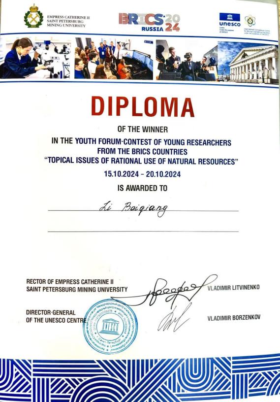 2024年10月15日至20日,由圣彼得堡矿业大学主办,中国矿业大学协办的“矿产资源作为国家主权的基础—人才与创新环境”国际论坛及“自然资源合理利用的热点问题”金砖国家青年学者论坛在俄罗斯圣彼得堡成功召开,电子轮盘 青年教师李百强博士和许成成博士参会,与国际同行开展学术交流。