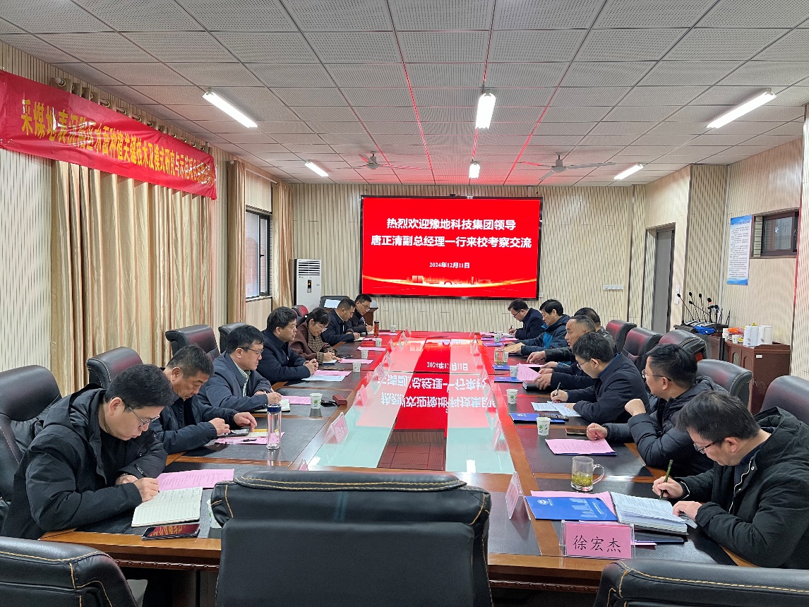 12月11日,河南豫地科技集团有限公司(简称:豫地科技集团)副总经理唐正清一行到访学校,校党委常委、副校长张平松、大国工匠朱恒银教授参加交流会,会议由电子轮盘 院长刘启蒙主持。