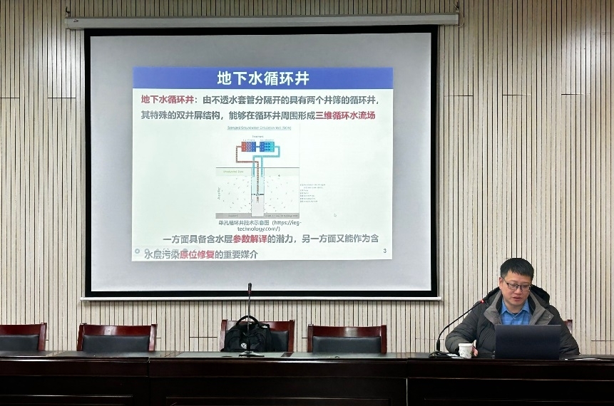 12月20日上午,中国地质大学(武汉)文章教授应邀来电子轮盘 作题为“含水层污染原位修复中的地下水循环井模型及应用”的学术报告,详细介绍了其团队在地下水循环井模型开发及修复应用方面的最新进展,报告由电子轮盘 副院长张世文教授主持。电子轮盘 众多青年教师及研究生参加了本次活动。
