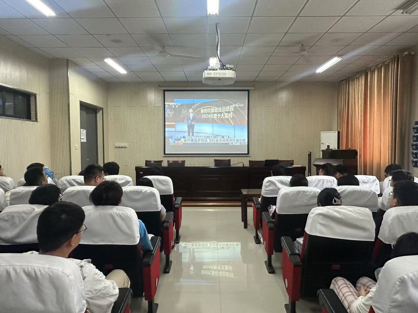 活动中,参会党员视频观看由最高人民法院与中央广播电视总台共同主办的“新时代推动法治进程2024年度十大案件”揭晓活动,了解“新能源汽车底盘”技术秘密侵权案、全国首例操纵“网络水军”民事公益诉讼案等十起案件的内容及判决,进一步感受习近平法治思想在司法案件的生动实践。