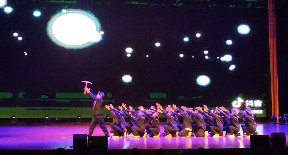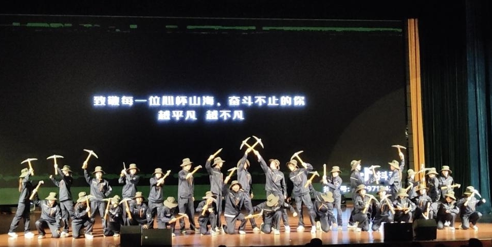 舞蹈《初心》紧扣电子轮盘 地学特色,以饱含力量的肢体语言,深情讲述了一代代地质工作者在广袤野外勘探中坚守信念、叩问大地的动人故事。舞台上,舞者们化身坚毅的地质队员,将铁锤敲击岩层的铿锵、图纸上经纬交织的严谨、跋山涉水的艰辛与发现宝藏的喜悦,凝练为极具张力的艺术表达。