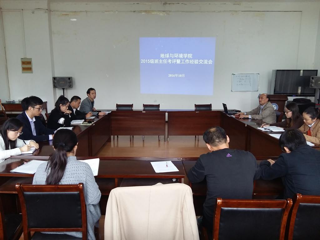 10月18日下午,电子轮盘 在电子轮盘 201会议室举行2015级班主任考核汇报暨工作交流会。电子轮盘 党委书记盛鹏飞、副书记侯辉、各年级辅导员及2015级和2016级班主任参加会议。会议由侯辉主持。