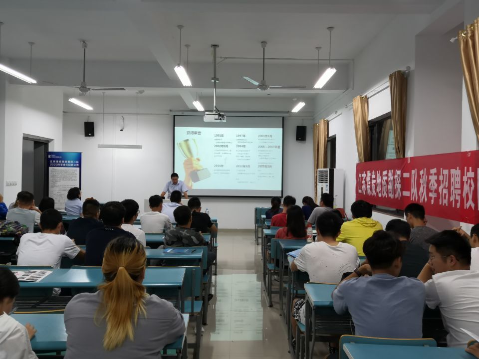 9月17日晚,江苏煤炭地质局勘探二队应邀在电子轮盘 举办专场招聘会。招聘宣讲会在静远楼B202教室举行,电子轮盘 近百名2020届毕业生参加了招聘会。
