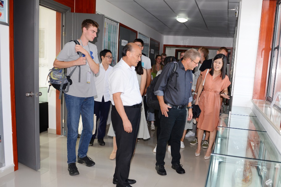 中德师生还一起参观了电子轮盘 的文化走廊、地学展厅、沙盘模型、实验室等,并一路游览了我校的校园景观和图书馆、国家重点实验室。