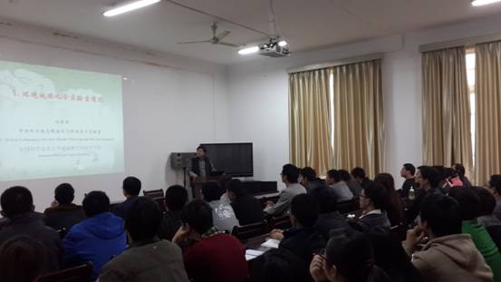2013年11月9日下午3:00,电子轮盘 邀请中国科学技术大学刘桂建教授来电子轮盘 进行学术交流,在电子轮盘 楼201会议室作了题为“微量元素的地球化学——环境示踪与应用技术”的报告。报告会由张平松副院长主持,电子轮盘 教师及各年级研究生聆听了报告。