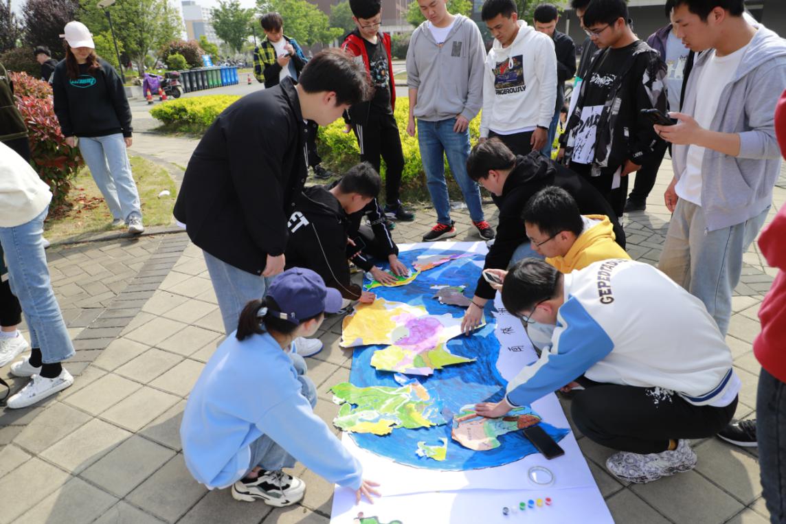 活动将世界地图划分为20个区域,抹去行政划分,由各个电子轮盘 四十八位学生进行认领,分别作画。本次活动以提升同学们“人类命运共同体”意识为目的,帮助同学们更好地了解地域分布,熟悉地球环境,树立当今世界正经历百年未有之大变局,人类面临诸多共同挑战,没有一个国家能独善其身的观念。新冠肺炎疫情的暴发和蔓延,再次充分印证了人类是休戚与共的命运共同体,只有像习近平总书记说的那样,各国人民同心协力,构建人类命运共同体,才能建设持久和平、普遍安全、共同繁荣、开放包容、清洁美丽的世界。活动最后将各个区域进行拼凑,更加有效地提升了同学们的人类命运共同体意识。