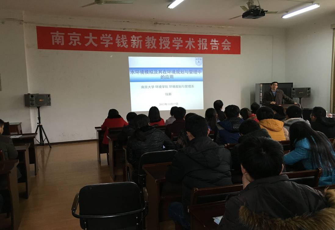 11月27日,应校科技产业处、电子轮盘 的邀请,南京大学环境电子轮盘 环境规划与管理系主任钱新教授到我校进行学术交流,并在电子轮盘 二楼学术报告厅做了题为“水环境模拟及其在环境规划与管理中的应用”的学术报告,环境、地质专业教师及研究生共计80余人参加报告会,院长胡友彪教授主持了报告会。