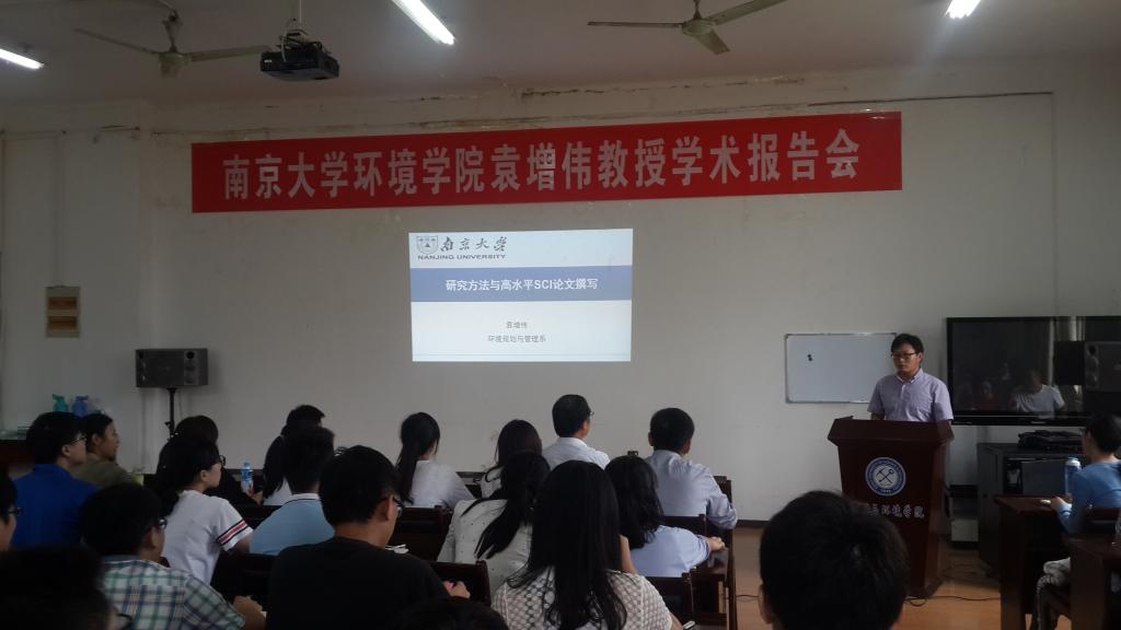9月27日,应校科技产业处和电子轮盘 的邀请,南京大学博士生导师、优秀中青年学科带头人、江苏省333工程中青年科学技术带头人袁增伟教授来我校进行学术交流,在电子轮盘 二楼学术报告厅做了题为“研究方法与高水平SCI论文撰写”的学术报告,电子轮盘 副院长张平松教授主持了报告会,环境、地质及管理等学科相关专业教师、研究生和本科生90余人参加了学术报告会。