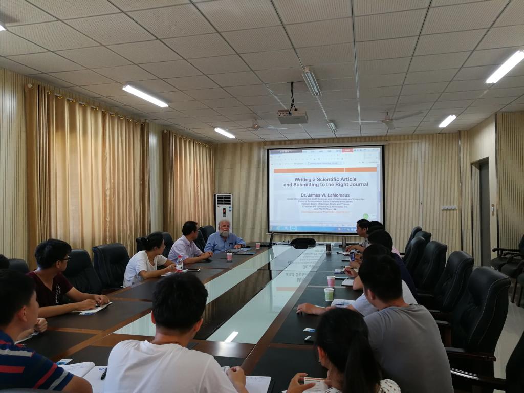 7月22日下午,应校国际合作交流处、科技产业处和电子轮盘 的邀请,美国PELA GeoEnviromental公司主席、国际水文地质学家协会美国董事会主席James W.LaMoreaux教授和ZeoEnvironmental公司主管Wanfang Zhou教授来校开展学术交流。两位教授应邀进行学术报告和讨论交流,报告会在静远楼412会议室举行,由电子轮盘 院长胡友彪教授主持,相关专业教师和研究生出席报告会。