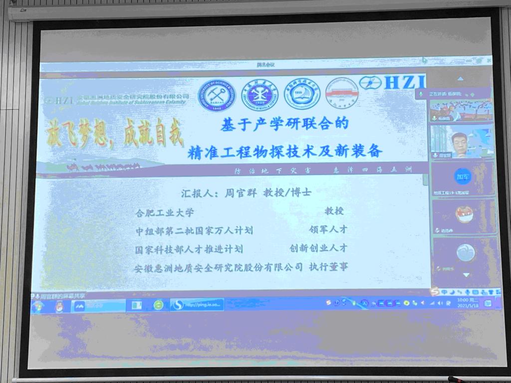 5月18日上午,应校自然科学处、电子轮盘 邀请,合肥工业大学周官群教授在线上为电子轮盘 师生作了《基于产学研联合的精准工程物探技术及新装备》的学术报告及“放飞梦想,成就自我”的励志报告。报告会由电子轮盘 副院长吴荣新主持,电子轮盘 教师、研究生、本科生共计300余人在线上听取了报告会。