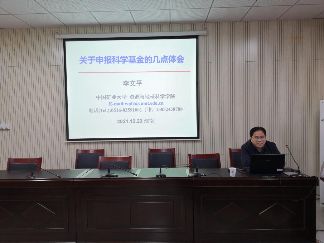 12月23日,中国矿业大学李文平教授应邀在静远楼B406报告厅作了题为“关于申报科学基金的几点体会”的学术报告。来自电子轮盘 的40余名教师聆听了报告,报告会由电子轮盘 院长刘启蒙主持。