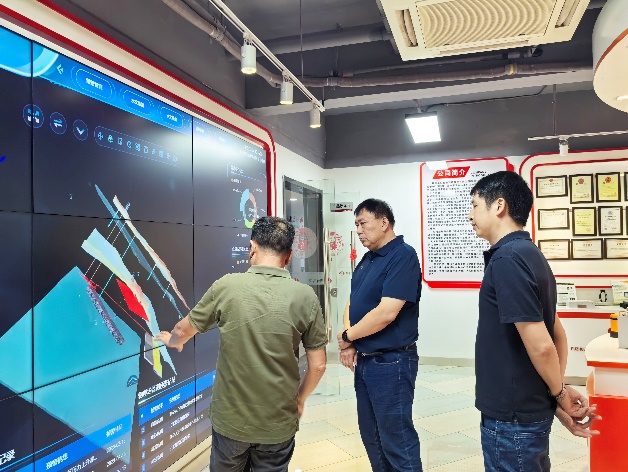 陈春江对刘启蒙一行的到访表示热烈欢迎,介绍了福州华虹的业务范围和科技创新。李培根针对公司在透明地质、震-电双探等研发过程中存在的问题,梳理了下一步合作方向,希望通过产学研助力福州华虹的高质量发展。